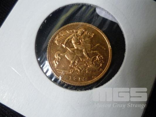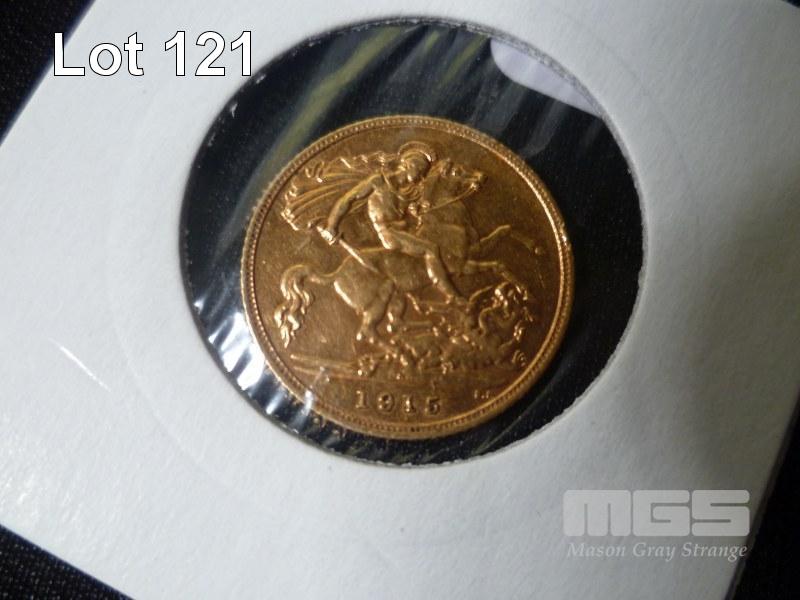 1915 GOLD HALF SOVEREIGN APPEARS HIGH GRADE UNC. GEORGE V, "S" MINT MARK