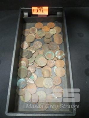 TRAY OF ASSORTED AUSTRALIA PENNY'S & HALF PENNY'S, (MAINLY DAMAGED OR ERROR COINS)