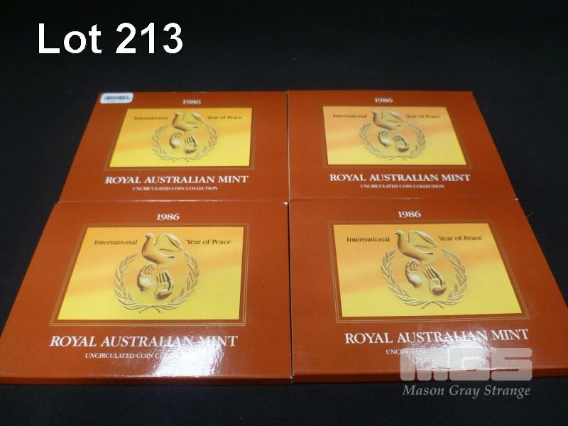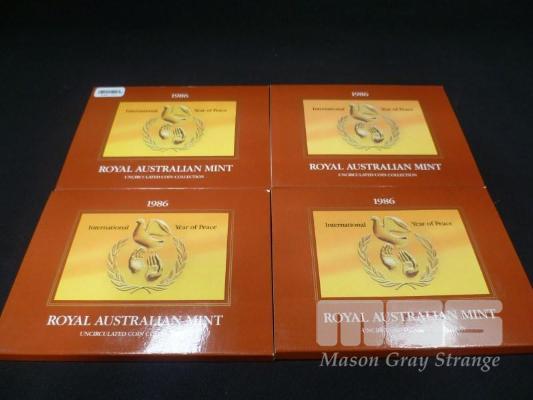 4 X ROYAL AUSTRALIAN MINT, 1986, UNCIRCULATED COIN COLLECTION, INTERNATIONAL YEAR OF PEACE