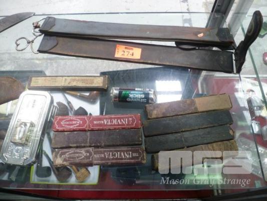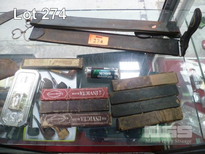 ASSORTED VINTAGE GROOMING PRODUCTS INC 8 x CUT THROAT RAZORS, 2 x RAZOR STRAPS & ROLLS RAZOR, MADE IN ENGLAND