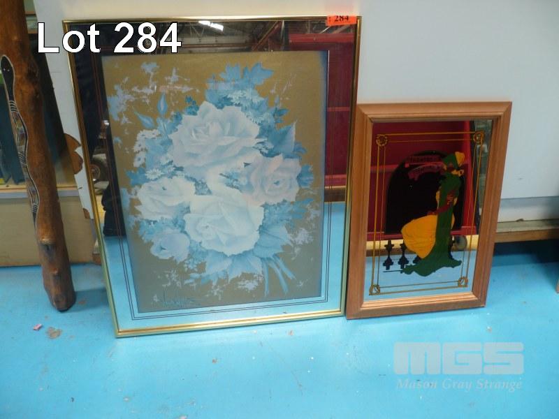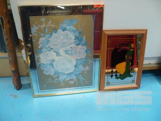 2 x BAR MIRRORS, INC FLORAL, 70 x 56cm, LADY, 53 x 37.5cm