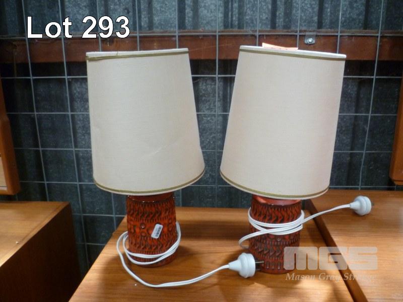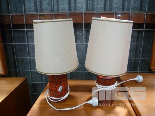 PAIR ORANGE GLAZE MID CENTURY TABLE LAMPS, MADE IN WEST GERMANY