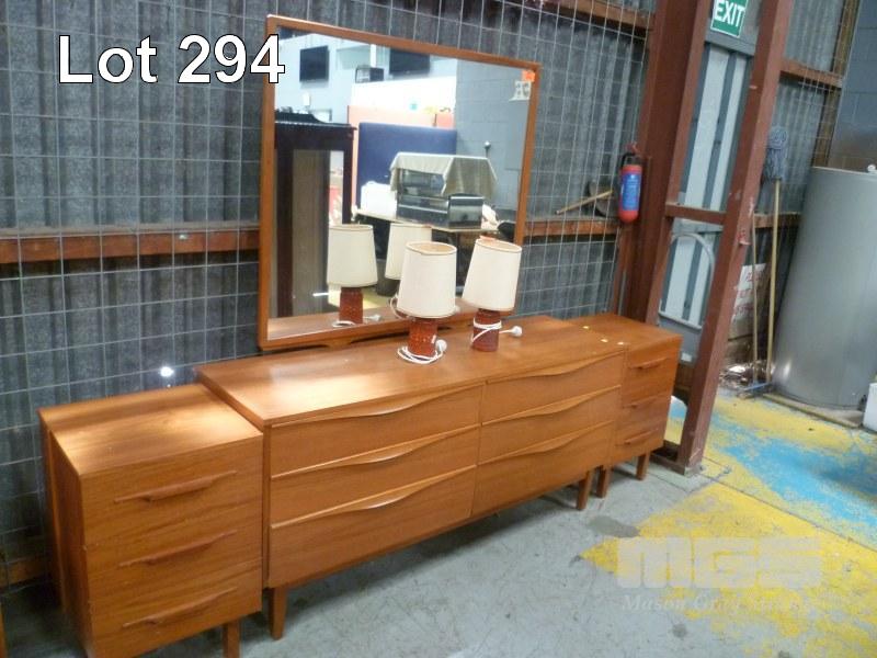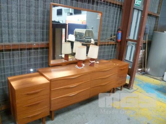 TEAK, 3 PIECE BEDROOM SUITE INC DRESSER, 6 x DRAWER & PAIR BEDSIDE CABINETS, 3 x DRAWER