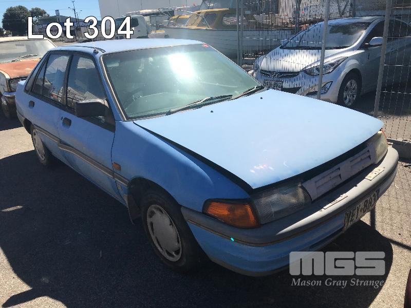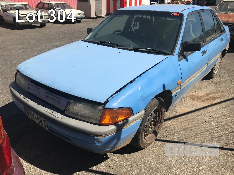 1991 FORD LASER SEDAN REG: VEY 883 VIN: 6FPAAAUK4RMM94027 ENG: UK4RMM94027 ODO: 502,926kms SHOWING 4 CYLINDER, PETROL, BLUE DUCO, 4 DOORS, 5 SEAT, AIR CON, TO SUIT SPARE PARTS OR SWAP (WITH 2 KEY/S, WITH OWNER'S MANUAL) CONDITION: BODY DUCO - DENTS & SCRATCHES, POOR CONDITION INTERIOR - POOR CONDITION
