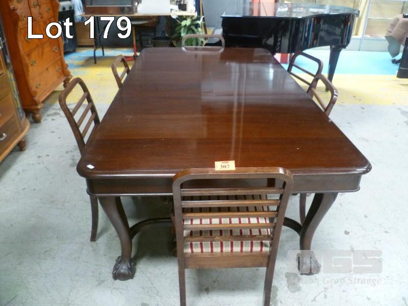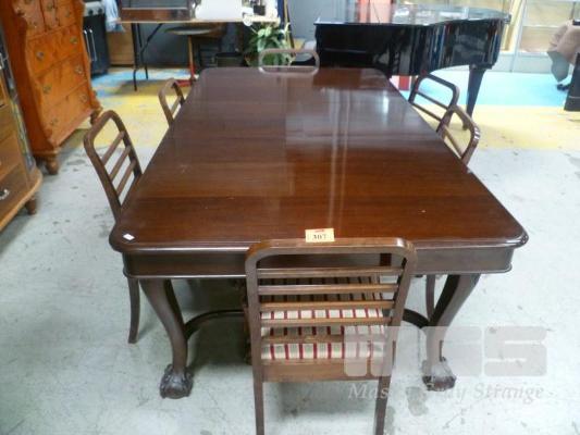 MAHOGANY 7 PIECE DINING SUITE INC RECTANGULAR EXTENSION TABLE, BALL CLAW FEET WITH 6 x LADDER BACK DINING CHAIRS, BALL/CLAW FEET, FABRIC UPHOLSTERED