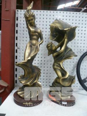 2 x RESIN STYLE LADY STATUES, (1 @ 610mm)