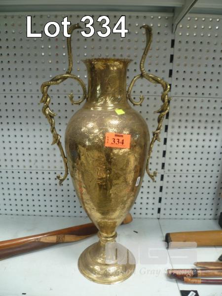 ORNATE BRASS VASE, 70cm (H)