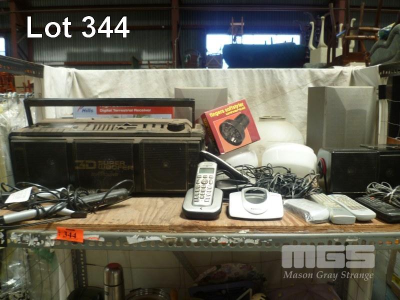 RETRO HITACHI PORTABLE STEREO, SPEAKERS, LIGHTING, ETC