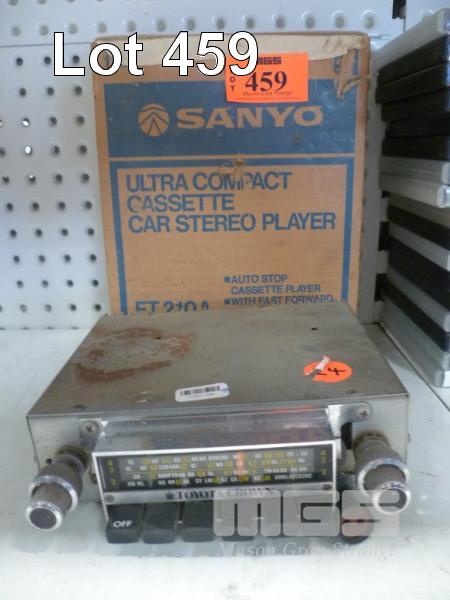 2 x RETRO CAR STEREOS INC SANYO PUSH BUTTON CASSETTE CAR STEREO, (GMH-ZH) & TOYOTA CROWN PUSH BUTTON CASSETTE STEREO