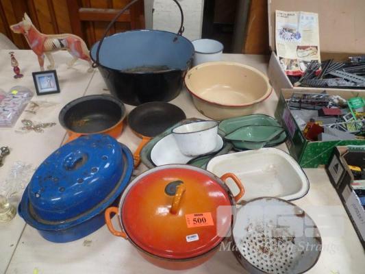 ASSORTED VINTAGE CAST IRON ENAMEL KITCHENWARE