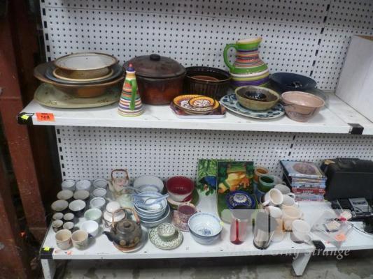 ASSORTED CERAMICWARE, BOWLS, CUPS, ETC, 2 x SHELVES