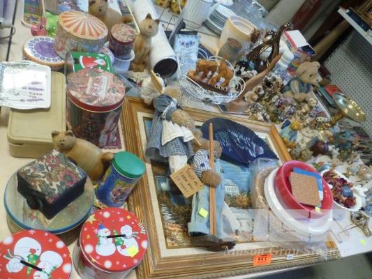 ASSORTED ORNAMENTS, PAINTING, ETC, 1 x TABLE