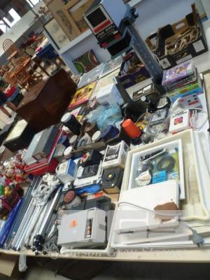 PHOTOGRAPHIC DARK ROOM EQUIPMENT INCLUDING DURST ENLARGER, M601, ENLARGING EASEL, TRAYS, TRIPODS, ETC, 1 x TABLE