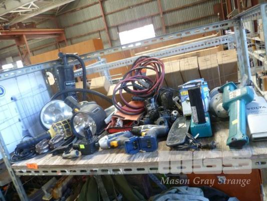 ASSORTED CORDLESS TOOLS, CHARGERS, SPOTLIGHT, ETC, 1 x BAY