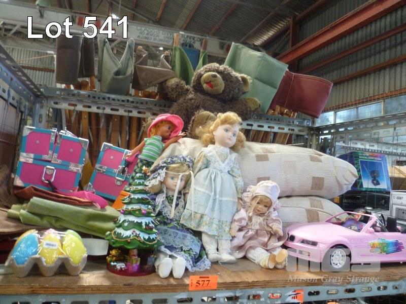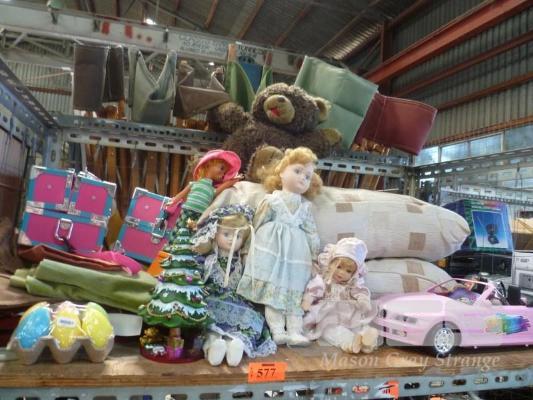 PORCELAIN DOLLS, TEDDY BEAR, TOYS, PILLOWS, ETC