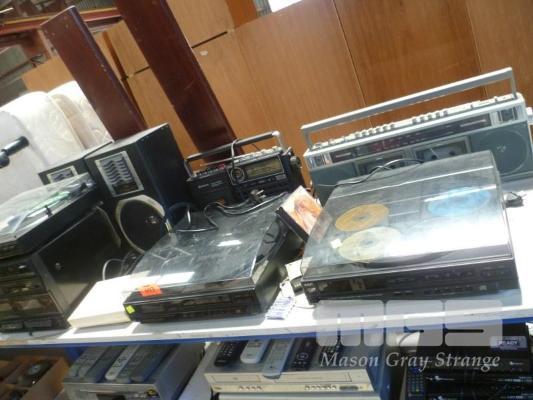 2 x CDC COMPACT DISC CHANGERS, PORTABLE STEREOS, SPEAKERS & SWITCH BOX