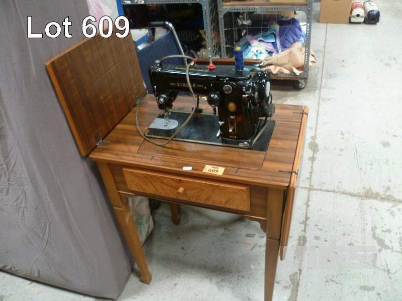 VINTAGE SINGER SEWING MACHINE IN SEWING TABLE