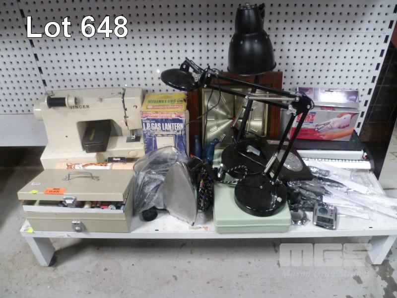 SINGER SEWING MACHINE, ACCESSORIES, KNIFE SET, WALL CLOCK, ETC