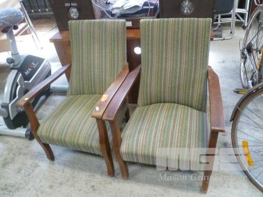 PAIR ART DECO ARM CHAIRS, TIMBER FRAME, GREEN FABRIC
