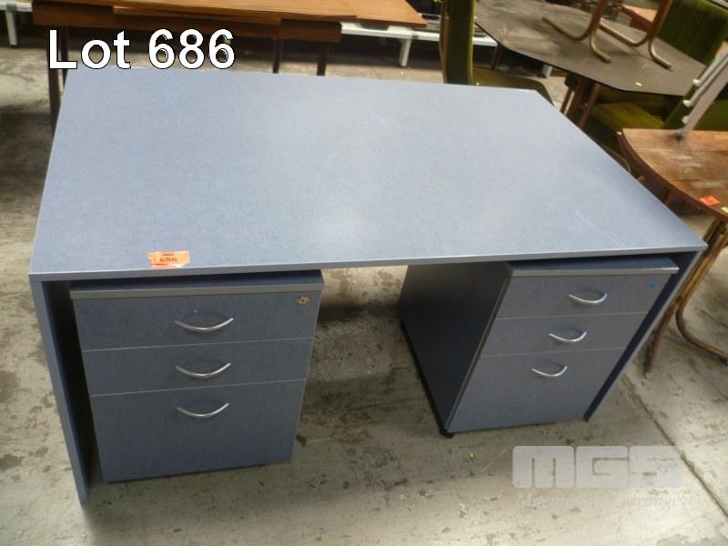 BLUE LAMINATE OFFICE DESK WITH 2 X 3 DRAWER UNDER DESK MOBILES