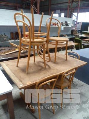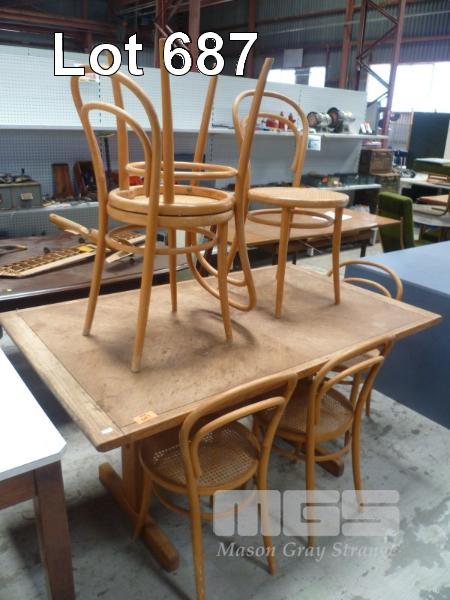 TIMBER 7 PIECE DINING SUITE INC RECTANGULAR TABLE & 6 x BENTWOOD DINING CHAIRS