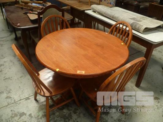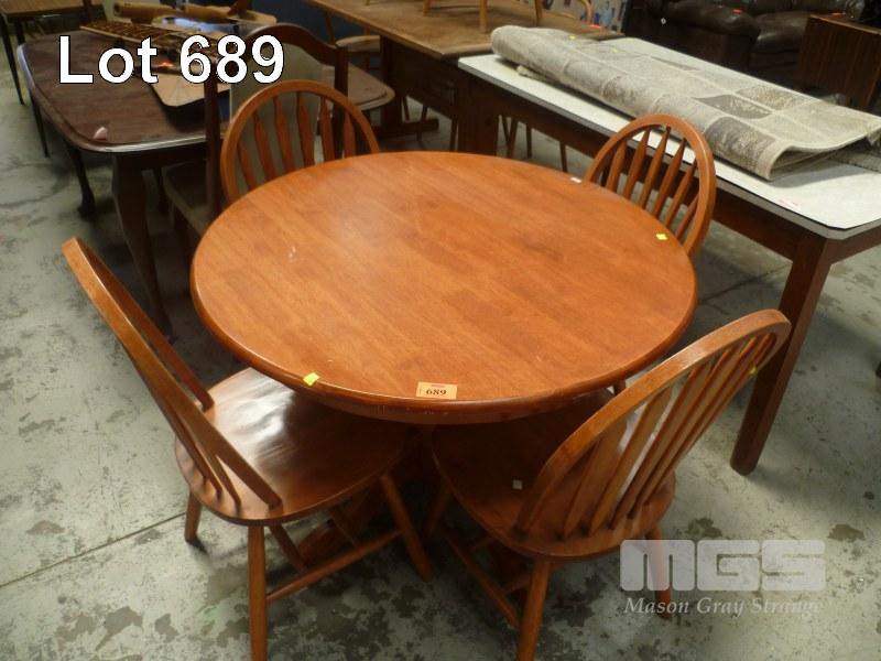 TIMBER 5 PIECE DINING SUITE, INC ROUND, SINGLE PEDESTAL TABLE & 4 x CHAIRS