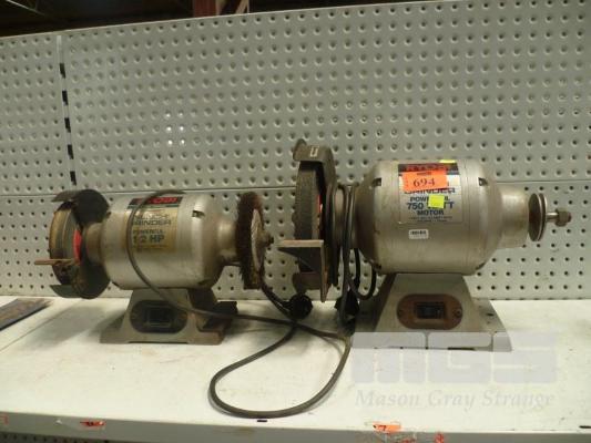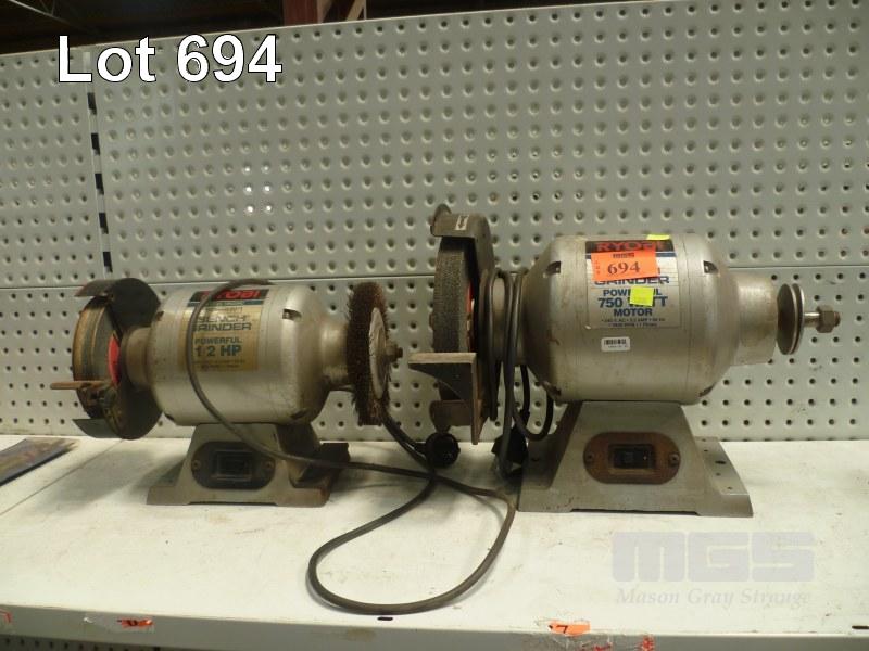 2 x BENCH GRINDERS, RYOBI, 6 & 8"