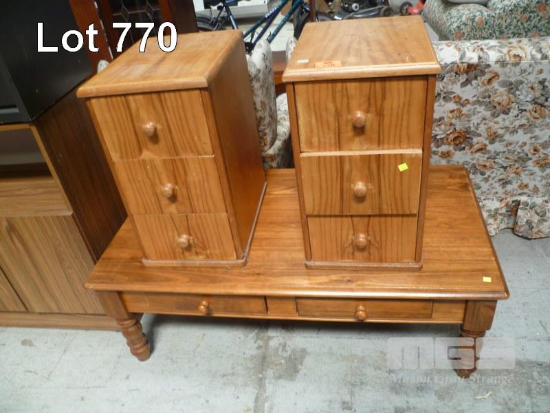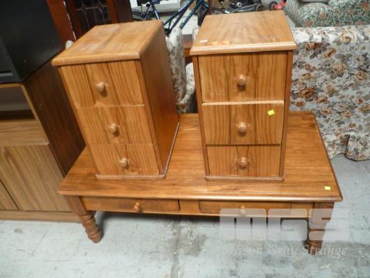 PAIR PINE BEDSIDE CABINETS & PINE RECTANGULAR COFFEE TABLE