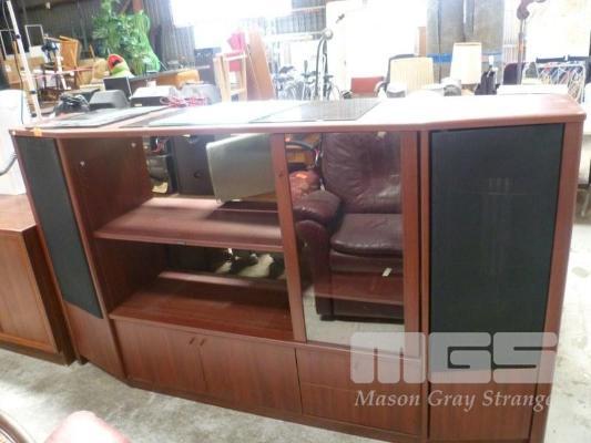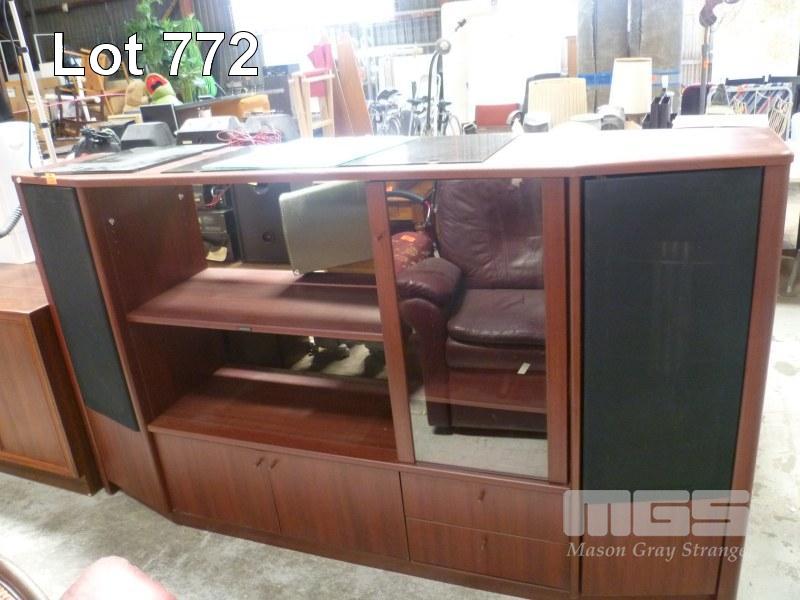 TIMBER VENEER ENTERTAINMENT UNIT, POWER BOARD ATTACHED, 220cm (L)