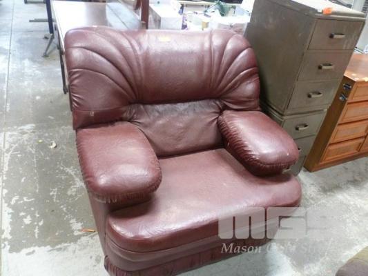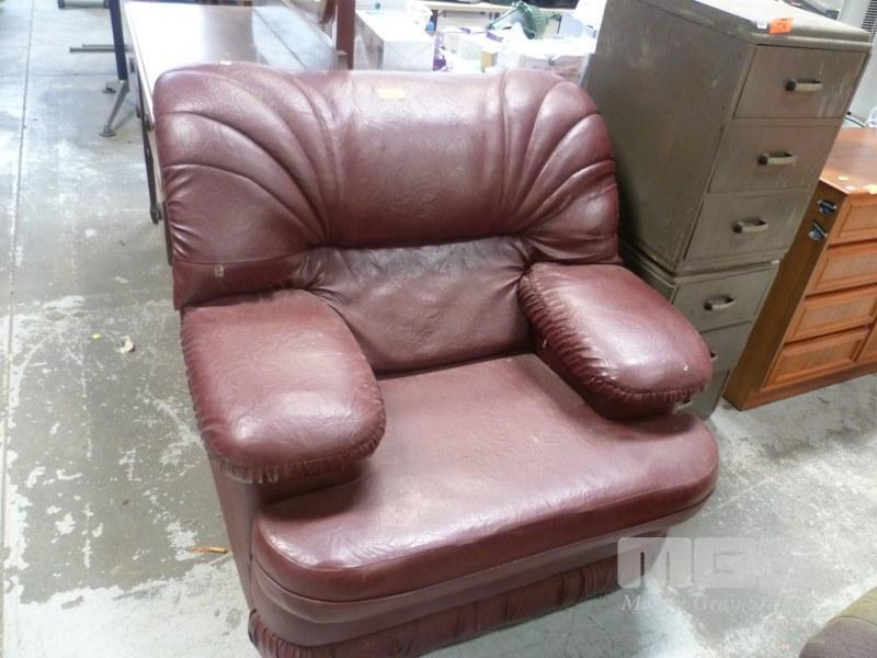 LEATHER LOOK ARM CHAIR, BURGUNDY