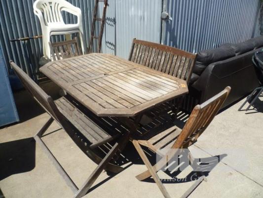 TIMBER 5 PIECE OUTDOOR SETTING INC RECTANGULAR TABLE, 2 x BENCH SEATS, 2 x SINGLE SEATERS