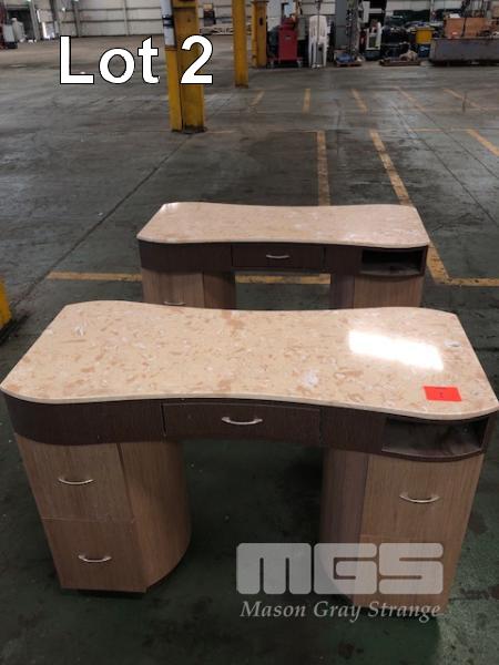 PAIR BEAUTICIANS TECHNICIAN TABLES, 5 DRAWER WITH INTERNAL RACKS 1070 (W) x 460 (D) x 780mm (H)