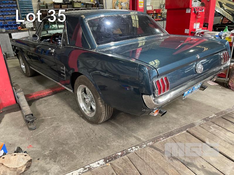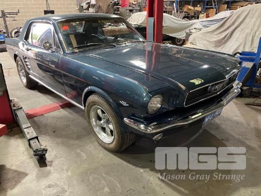 1966 FORD MUSTANG (LHD) COUPE REG: WFJ 906 (SA) ODO: 88,323miles INDICATED 4 BARREL 289 V8, T-BAR AUTOMATIC TRANSMISSION, NEW METALLIC BLUE DUCO, ID: 6R07C23A814 HUSTLER ALLOY WHEELS UPGRADES INCLUDES, HEADERS, VAC BOOST BRAKES, ALLOY RADIATOR, ENGINE DRESS UP KIT EDERBROCK