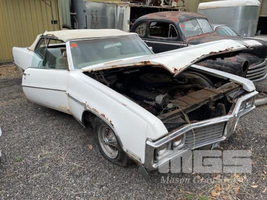 BUICK 2 DOOR RAG TOP ELEGTRA 225, 455 V8 WIRE SPOKE WHEELS ENGINE/AUTO ROLLING CAR LEFT HAND DRIVE NEEDS FULL RESTORATION