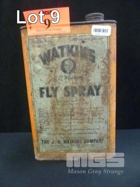 VINTAGE WATKINS FLY SPRAY, HALF IMPERIAL GALLON TIN