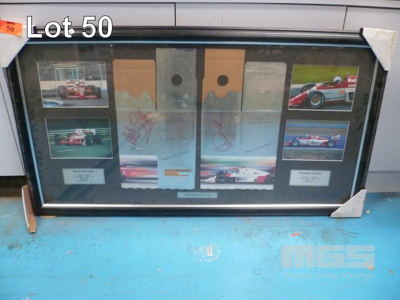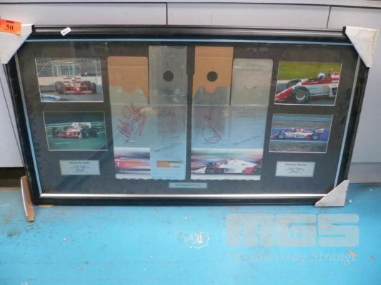 FRAMED, AUTOGRAPHED, F1 GP MEMORABILIA