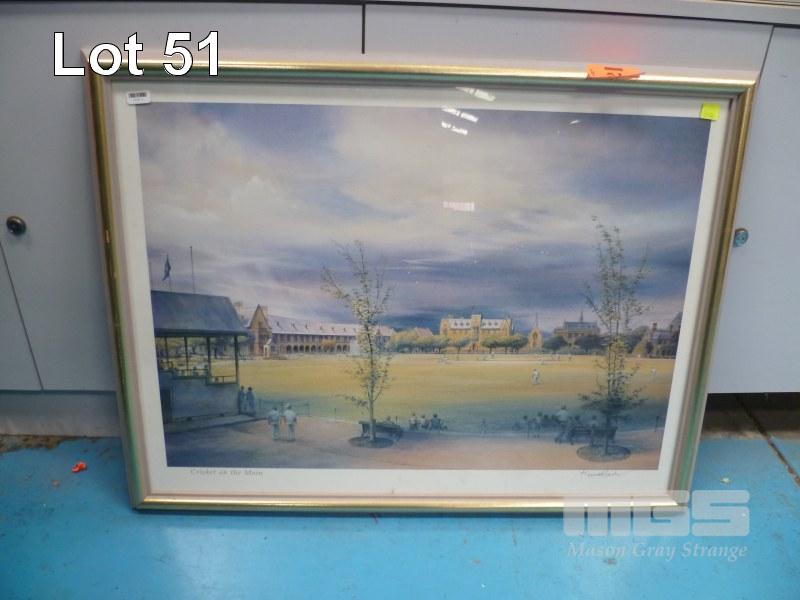 FRAMED PRINT "CRICKET ON THE MAIN" SIGNED BY KENNETH JACK