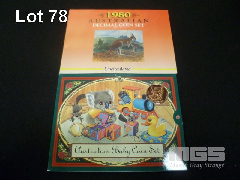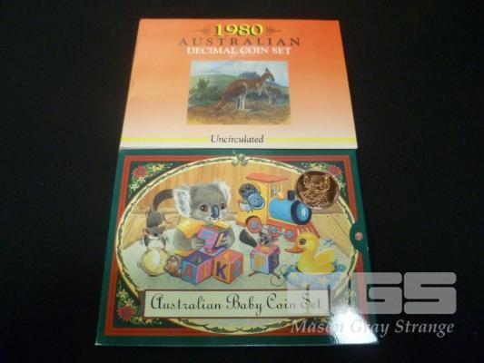 1980 6 COIN UNC SET + 2000 BABY DATE 6 COIN UNC SETS (NO OUTER COVERS)