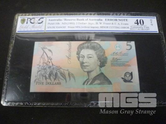 1992 $5.00 ERROR NOTE CUTTING ERROR GRADED EF FRAZER EVANS