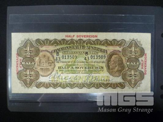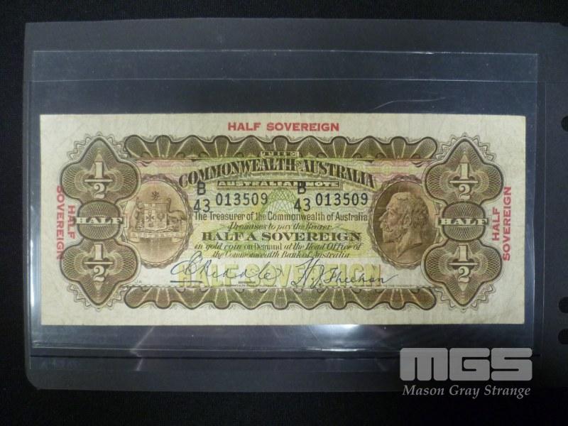1933 HALF SOVEREIGN NOTE LAST PREFIX "B43" THIN SIGN RIDDLE SHEEHAN NICE GRADE
