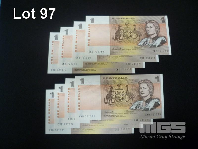 1976 8 x $1.00 GOTHIC SIDE THREAD CONSECUTIVE NOTES KNIGHTS WHEELER UNC