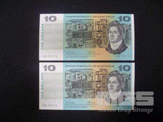 1972 2 x $10.00 NOTE PHILLIPS WHEELER CONSECUTIVE APPEAR UNC