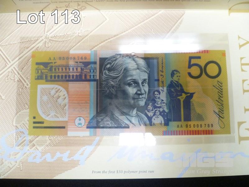 1995 LOW NUMBER 1ST PREFIX AA95 $50 IN FOLDER 1ST YEAR OF POLYMER $50 NOTES