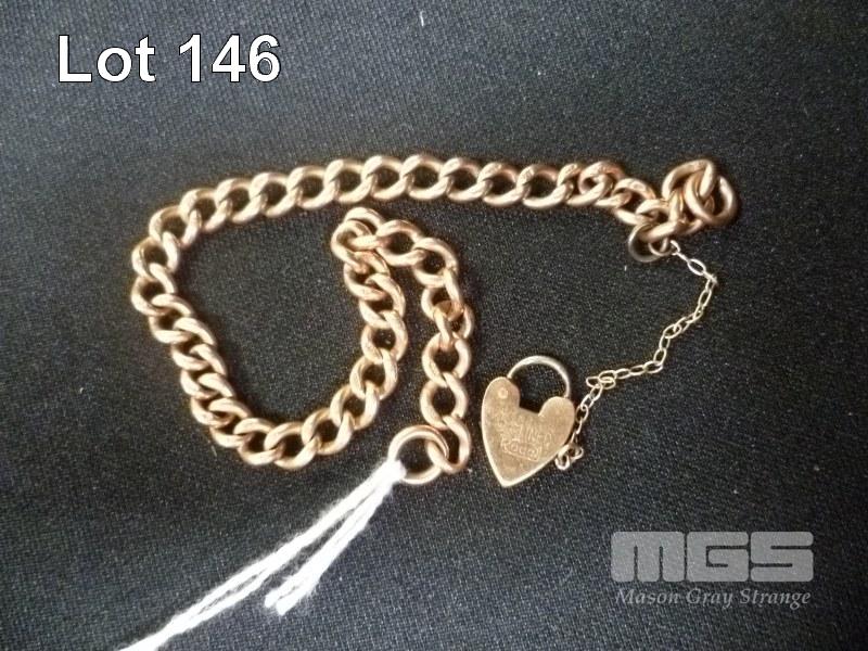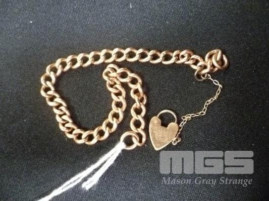 GOLD BRACELET, 9 CT, CHAIN LENGTH 21CM, WITH HEART SHAPED LOCKET MARKED 9CT LINED, 19.7 GMS