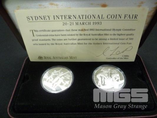 1983 2 x $20.00 PURE SILVER 1oz PROOF COIN "OLYMPIC SET" IN BOX