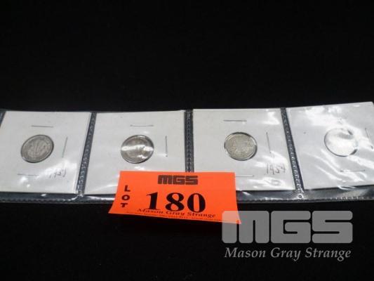 THREE PENCE, SILVER AUSTRALIAN, 1947, 1948, 1949, 1950