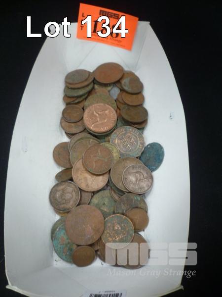 VINTAGE AUSTRALIAN COINS, PENNYS, 1 x TRAY