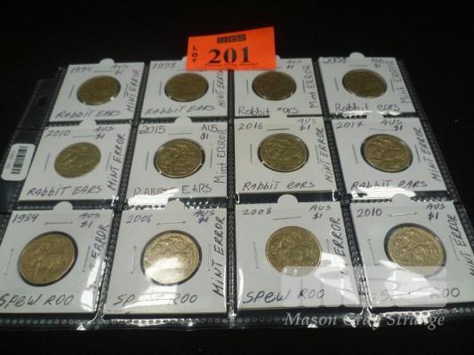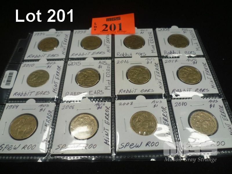 12 X AUSTRALIA $1 ERROR COINS, INC; RABBIT EARS, SPEW ROO