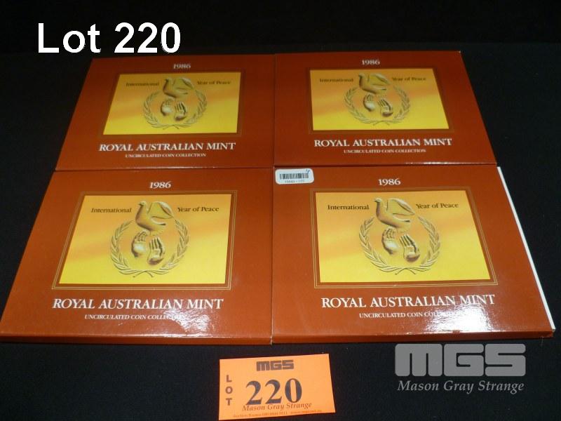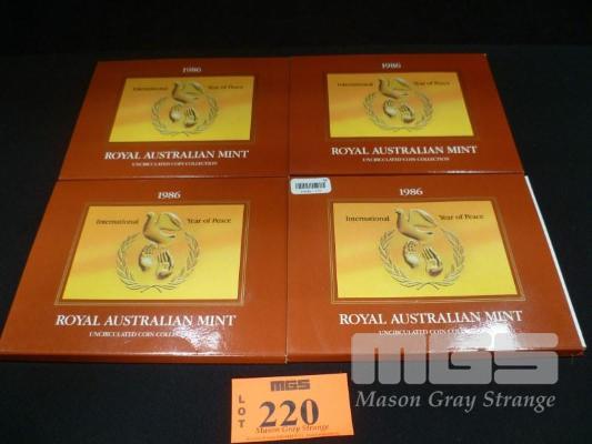 4 X ROYAL AUSTRALIAN MINT, 1986, UNCIRCULATED COIN COLLECTION, INTERNATIONAL YEAR OF PEACE