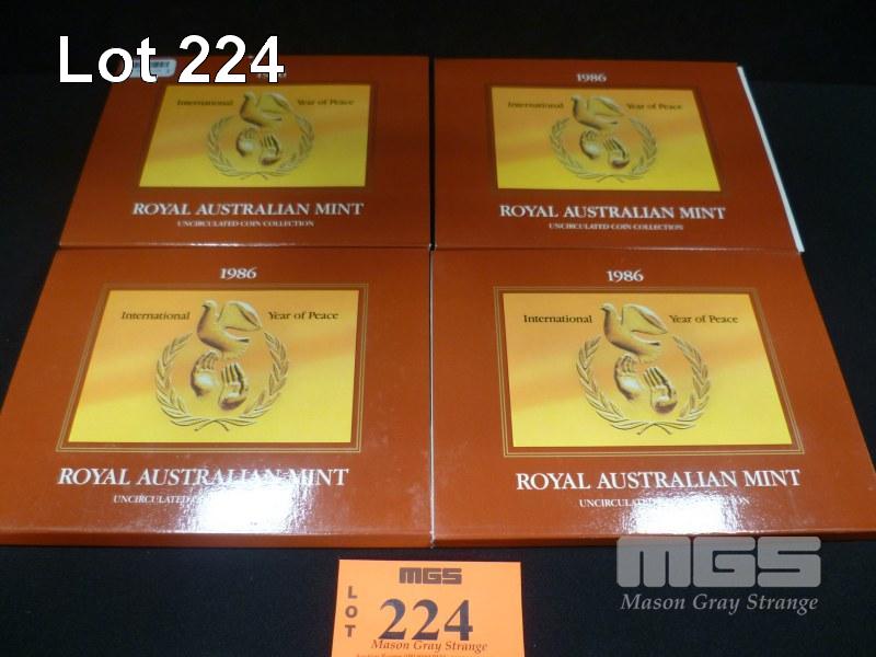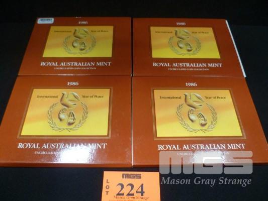 4 X ROYAL AUSTRALIAN MINT, 1986, UNCIRCULATED COIN COLLECTION, INTERNATIONAL YEAR OF PEACE